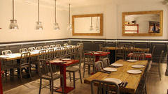 This modern urban restaurant is inspired in the Galician restaurants of old, decorated with fossilized wood tables and industrial details. The main attraction - the octopus - cooked and cut in public view, but the menu includes a wide variety of dishes prepared according to Galician culinary tradition.
